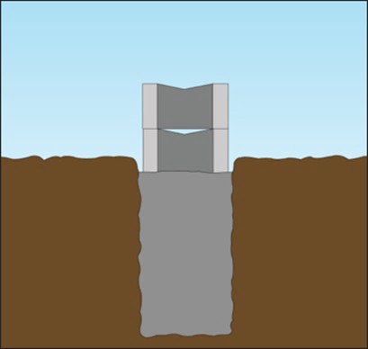 • Eller du kan opstille nogle plader eller brædder (forskalling) på begge sider af betonfundamentet, som fyldes med beton og afrettes vandret.