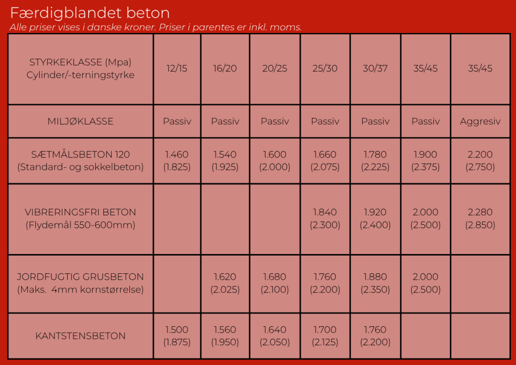 Priser på færdigblandet beton
